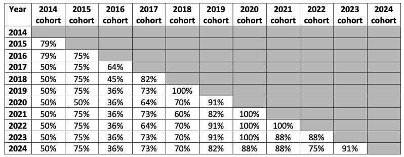 2024: 90% of 2019 graduates are still active five years post-graduation